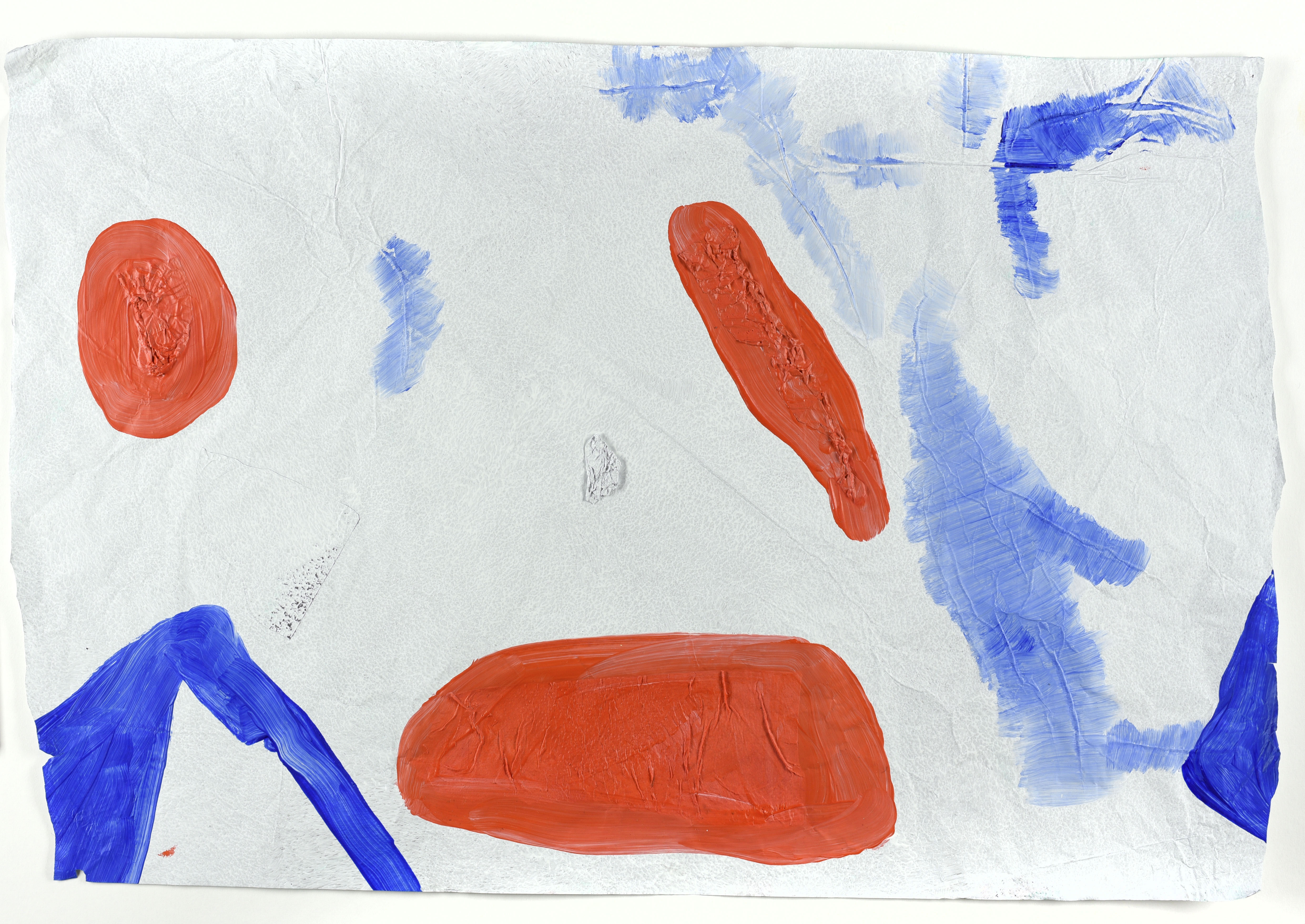 6. S/título, 2020, acrílico, gesso e papel sobre folha de alumínio, 29 x 44 cm