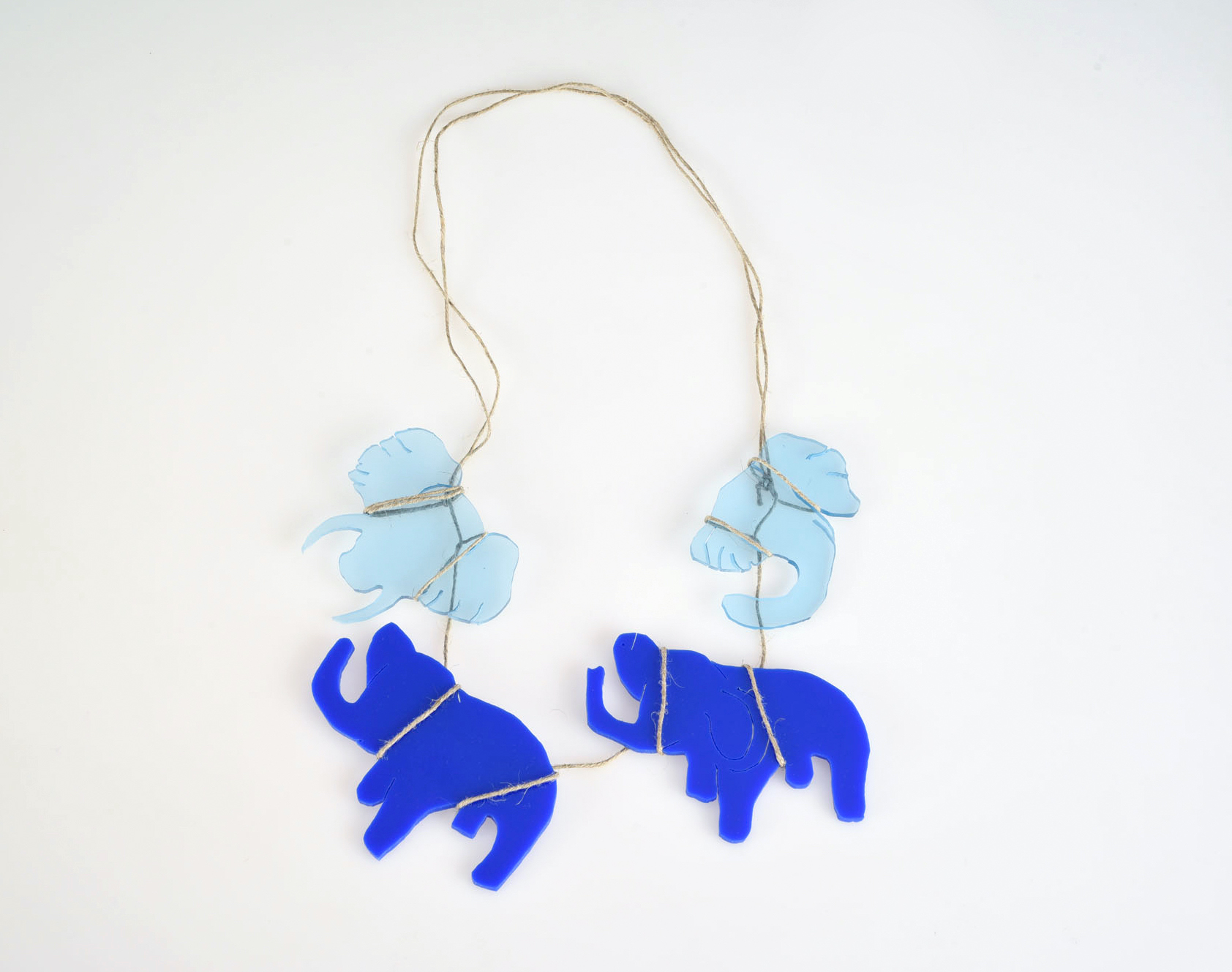 4. “Caravana de elefantes”, 2020, colar, acrílico e cânhamo, 30 x 30 x 0,5 cm