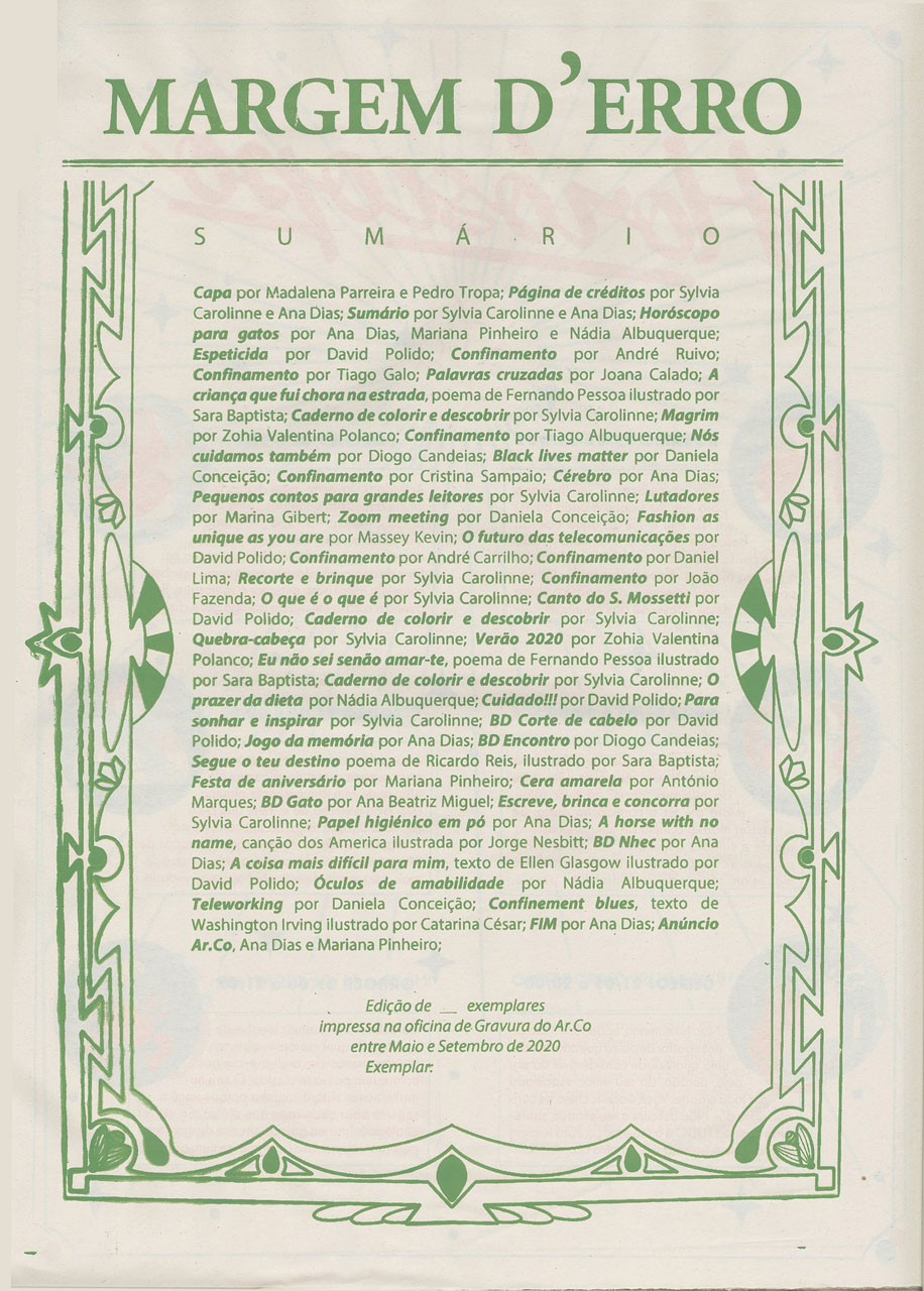 2. Jornal “Margem d’Erro - Para sonhar e inspirar”, serigrafia a duas cores, 29 x 40 cm